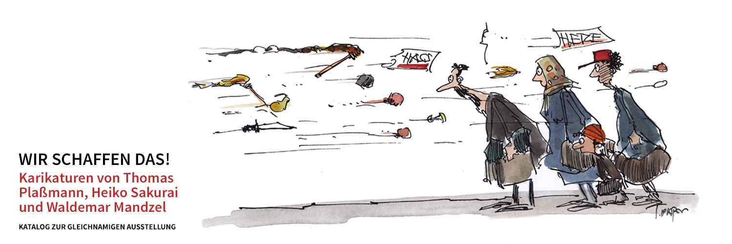 Die LUDWIGGALERIE Schloss Oberhausen, die sich regelmäßig mit den sogenannten populären Künsten in Form von Comic, Karikatur etc. beschäftigt, hat eine Ausstellung der Karikaturisten Waldemar Mandzel, Thomas Plaßmann und Heiko Sakurai zusammengestellt. Die Karikaturen geben treffliche Einblicke in die jeweilige Kreativwerkstatt und zeigen außerdem das politische Geschehen auf.