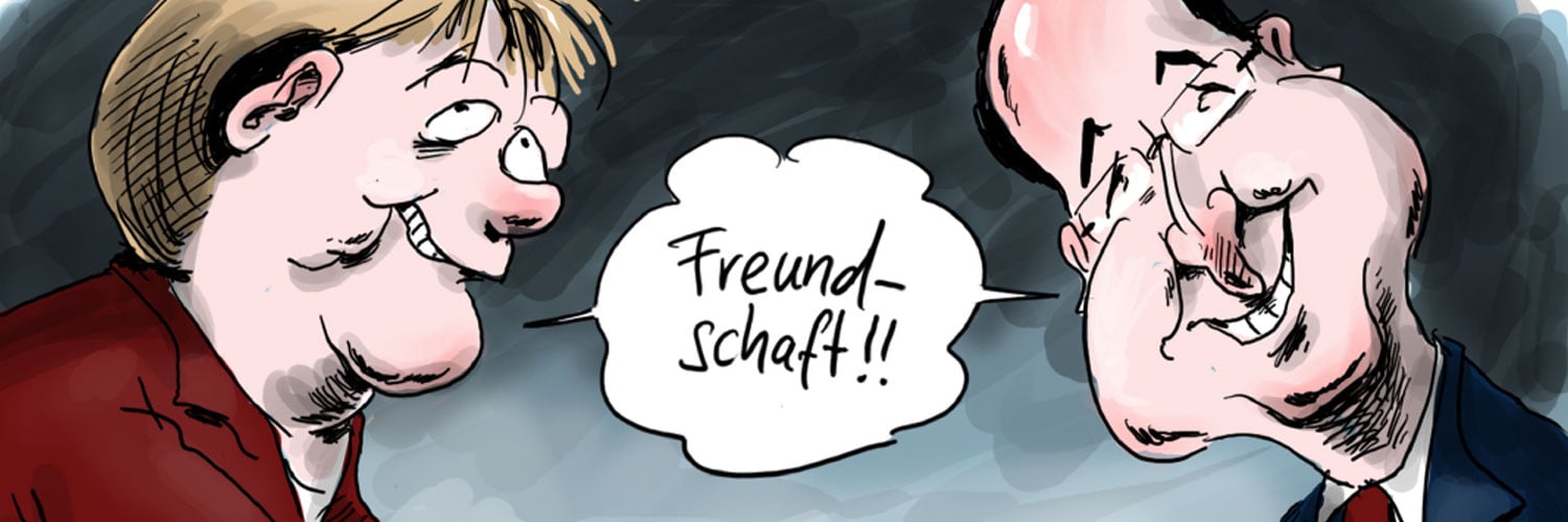 Das deutsch-französische Paar, antiquiert? Gewiss, es ist bereits ein halbes Jahrhundert her, dass General de Gaulle und Bundeskanzler Adenauer im Élysée-Palast den Vertrag unterzeichneten, der die Aussöhnung zwischen den ehemaligen Feinden besiegeln sollte. Aber das deutsch-französische Tandem ist immer noch taufrisch, man muss es nur durch die richtige Brille betrachten. Die Ausstellung „Paarlauf – Pas-de-deux“ zeigt die deutsch-französischen Beziehungen in Vergangenheit, Gegenwart und Zukunft im Spiegel der Karikatur.