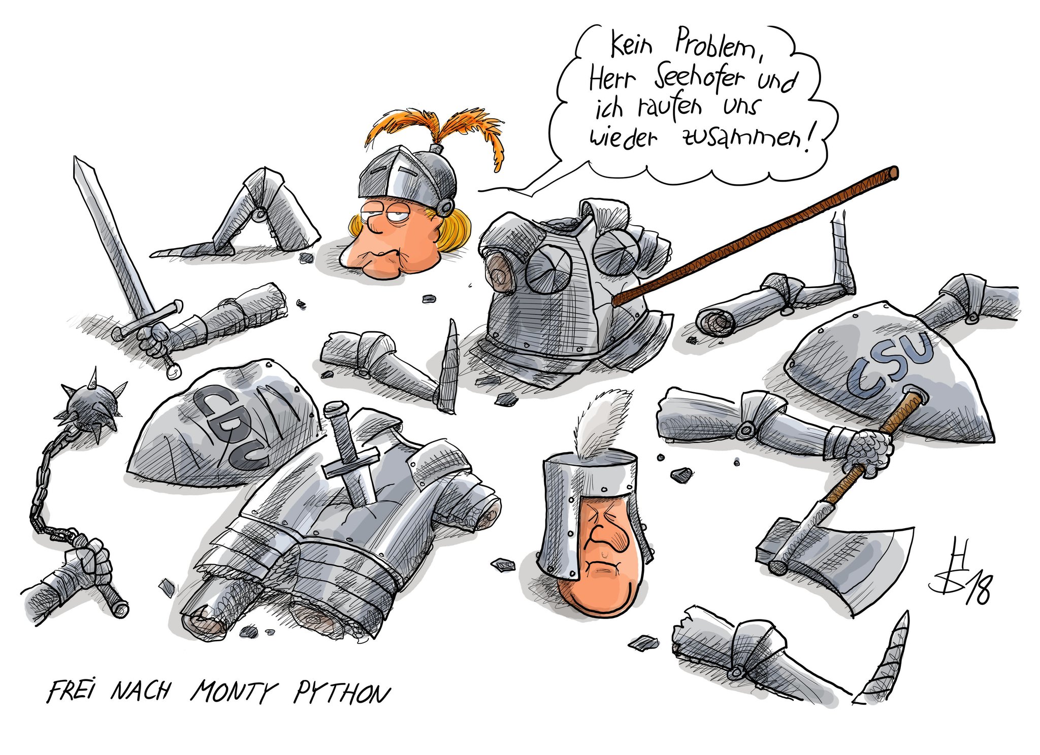 Merkel hat ihren Rücktritt auf Raten angekündigt. Die gute alte Dame SPD begleitet sie in den Sonnenuntergang. Zum Glück hat Heiko Sakurai auch 2018 für uns alles meisterhaft satirisch