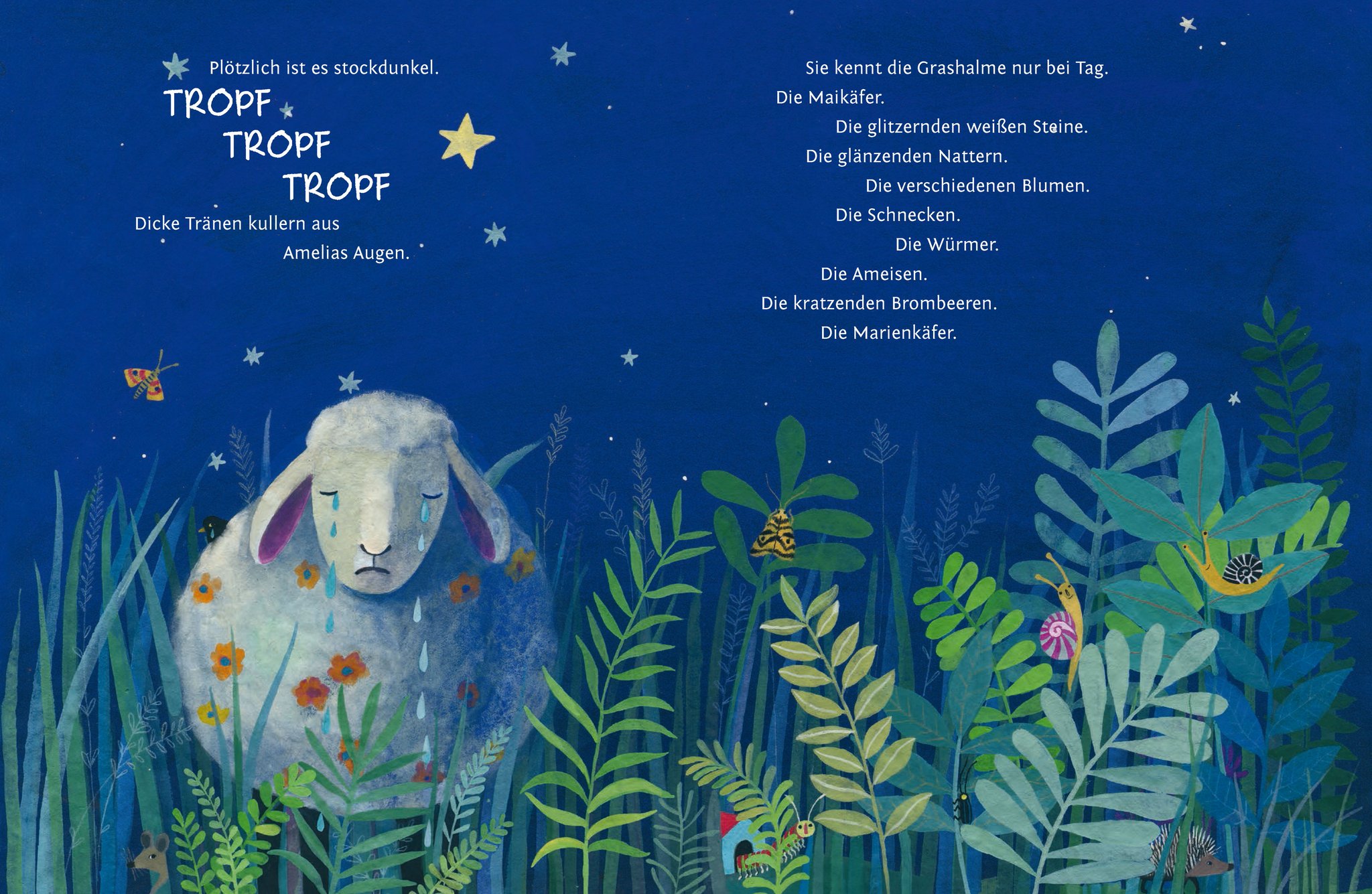 Tagein, tagaus trottet das brave Schaf Amelia der Herde hinterher. Frisst hier etwas, frisst dort etwas. Wenn es dunkel wird, trotten alle